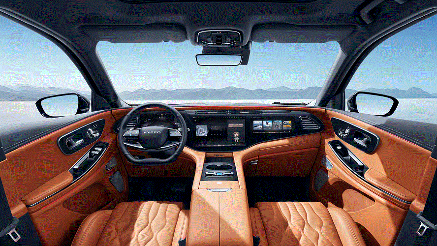 智能座舱是提升出行幸福感的核心。两车风格各异,但均以家庭需求为中心。揽月C-DM 搭载15.6英寸中控屏+12.3英寸仪表盘的组合,并同步给到了一台12.3英寸副驾娱乐屏(高通8155芯片)与W-HUD。其突出亮点在于 Lion Melody殿堂级音响(23扬声器)+ ANC主动降噪组合,营造出极具沉浸感的静谧声学空间。全车多排座椅均配备加热、通风、按摩功能,配合远程温控,冬季出行关怀备至。