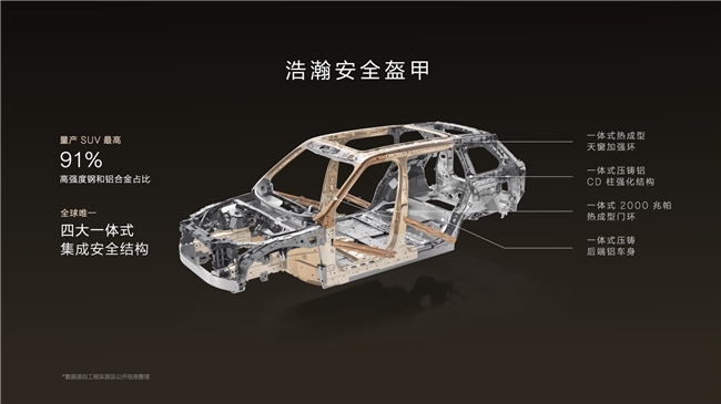 浩瀚安全盔甲以全球最强车身安全体系树立新标杆。白车身高强度钢与铝合金占比达91%,搭载全球唯一“四大一体式集成安全结构”,实现41600N·m/deg车身扭转刚度,并通过行业首个单车四向连环极限碰撞测试。主动安全方面,G-AES通用障碍物自动紧急转向辅助可在130km/h实现连续避让;侧碰主动抬升系统提前0.7秒抬升单侧底盘,用最坚固的门槛梁承受冲击。