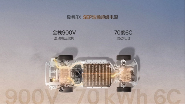 从产品力来看,极氪8X与极氪9X同源打造,基于浩瀚-S超级电混架构,搭载全球首个全栈900V高压混动架构、SEP浩瀚超级电混系统,配备6C混动电池、2.0T混动专用发动机及145kW同级高功率增程发电机,覆盖纯电、增程、混动多种驱动模式。极氪8X曜影版更搭载兆瓦级三电机系统,总功率达1030kW,零百加速仅需2.96秒,是全球加速最快的混动SUV。